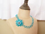 ガーベラのブローチとチェコビーズの2連ネックレスのデミパリュール(ブルーハワイ)