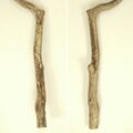 曲がるすぐ手前の径は 3.1~3.4cm ほどの楕円、枝先から 30cm 近く 枝半分くらいとなる削れ、ヒビ割れもございますが、しっかりした流木です。