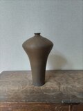 ブロンズ色の釉薬を掛けた磁器の花瓶です。金属のような色と質感が特徴的です。