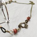 アンティークゴールドに咲く、ブラウンのお花モチーフのビーズグラスコード 1105125