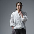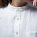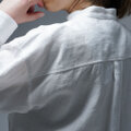 麻 Linen リネン リネンシャツ リネン羽織 シャツ 長袖シャツ ロールアップ袖 スタンドカラー 立て襟 ロング丈 オールシーズン 春 夏 秋 冬 男女兼用 UNISEX ユニセックス 白 白色 ホワイト