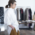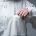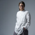 シンプルでスッキリとしたスタンドカラーのシャツ。