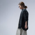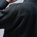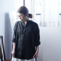 【wafu】Linen Shirt スタンドカラー ロールアップシャツ / 黒 t021f-bck1