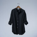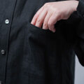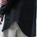 麻 Linen リネン リネンシャツ リネン羽織 シャツ 長袖シャツ ロールアップ袖 スタンドカラー 立て襟 ロング丈 オールシーズン 春 夏 秋 冬 男女兼用 UNISEX ユニセックス 黒 黒色 ブラック