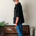 摩訶不思議! トップ部分ずらりボタンブラウス 小柄で細身な方向け 黒無地
