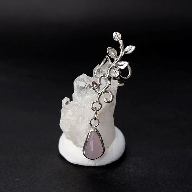 藤の花や紫陽花を想わせるような上品な色合いのフローライトを、蔓飾りのイヤーカフに仕上げました。