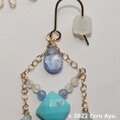 その先をチェーンに繋ぎ、タンザナイトのワイヤーの中に通して、ピアスパーツに下げました。