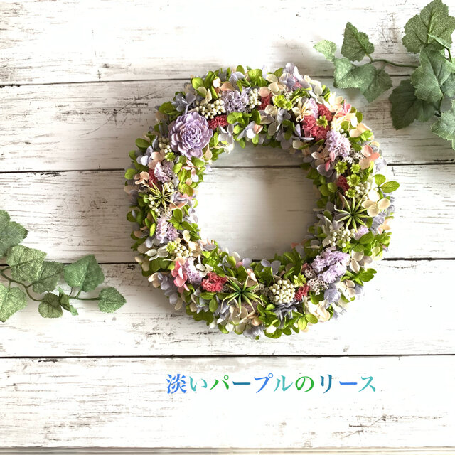 【フラワーギフトに!】淡いパープルのリースLサイズ ♯父の日 ♯フラワーギフト ♯誕生日・記念日ギフト