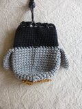 サマーコットン糸で編んだ赤ちゃんペンギンのミニペットボトル(380ml用)ケースです。