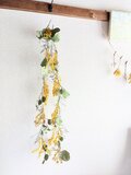 ミモザとブルーファンタジー、ユーカリを合わせたゆらゆら軽やかなドライフラワーモビール