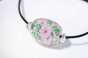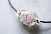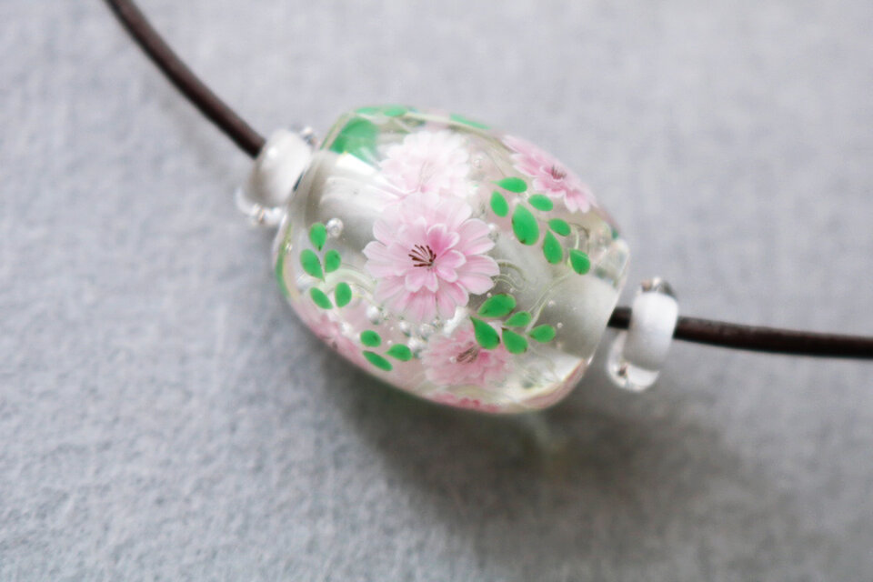 八重桜は表面に描いたのではなく、ひとつずつガラスでパーツを作り、溶かしたガラスに埋め込みながら制作しております。
