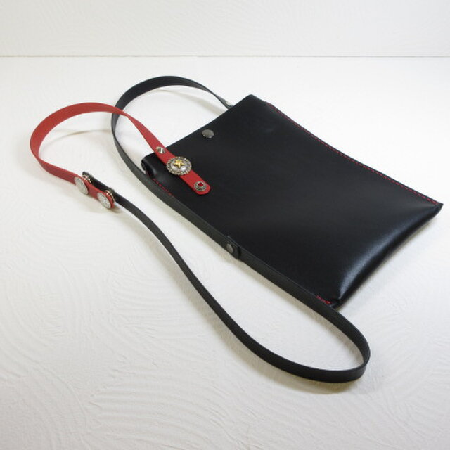 ☆ブラックのボディに真っ赤なステッチとベルトが映えるサコッシュです♪