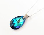 【稀少 大粒 スワロフスキー バミューダブルー 蒼 28mm 雫のネックレス】