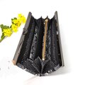 長財布であるのと、じゃばらの構造上、ファスナーの開け閉めが面倒だったり、 難しいと感じる方もいらっしゃるようです。ファスナーポケットは開けたままでも、口金を閉じた状態では、 小銭がお財布内でこぼれることはありません。
