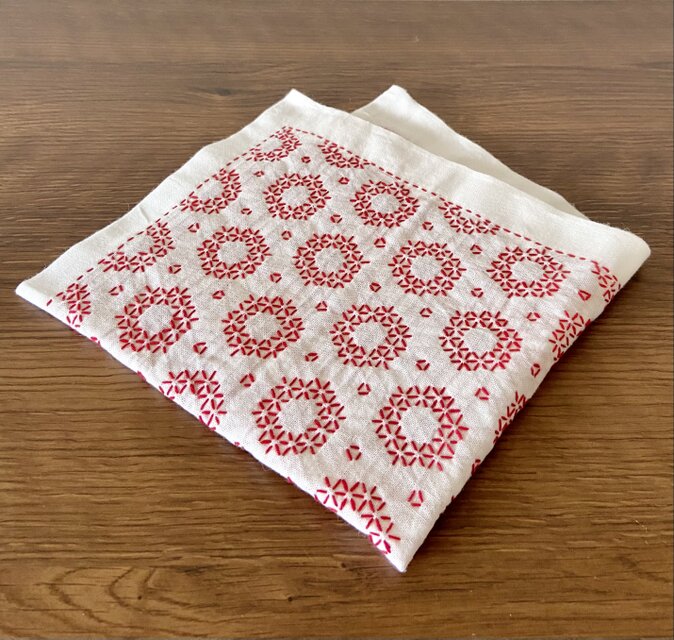 刺し子♡ふきん (籠目・アレンジ赤)です