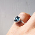 爽やかなブルーグリーンの石を透かし模様の台座にセッティングしました。