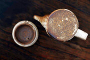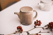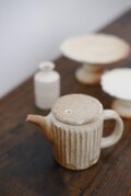 粉引・炭化焼成のポットです。茶漉しもついています。
