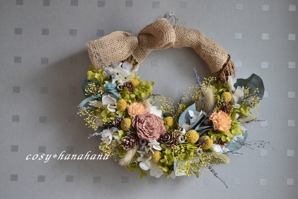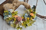 野のナチュラルなイメージを切り取ったようなハーフ型リース。