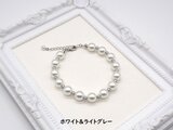 8㎜のパールの間にライトグレーまたはベージュのカラーパールを入れたブレスレットです。