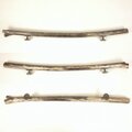 ブラウンゴールドのプラスチックカバー付き金具、金具同士の直線距離は 62.3cm、金具の足は 4cm ほどです。