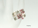 ビーズ,リング,コスチュームジュエリー,ビーズアクセサリー,ビーズリング,ビーズ指輪,花,パール,ホワイト,ピンク