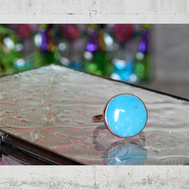 このリングに使ったのは一滴だけグリーンを混ぜたような美しいレトロブルー。