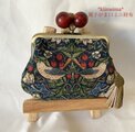 ウイリアムモリス いちご泥棒で作りました木玉親子がま口ミニ財布です