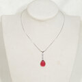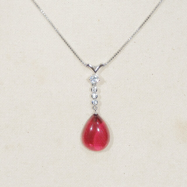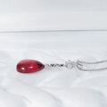 価値の高い鮮やかなレッドの色合いと、綺麗な透明感のレッドアンバー(琥珀)のトップのネックレスです。トップには輝きの綺麗なキュービックジルコニアも留めてあります。