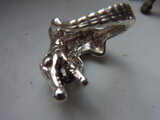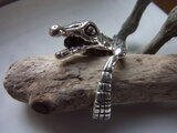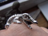 silverをいぶしてからみがきましたので、わにの背中の陰影がくっきりとして、よりインパクトの強さが際立っています。