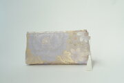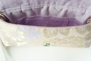 ゴールド 藤色 草花模様のシルク帯を使った2wayハンドバック&クラッチバックです。
