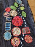 かすりのパッチワークが とっても丁寧で 美しく 色とりどりの生地も素敵にコラボ! 刺し子も 綺麗なラインで 美しい。 生地を 惜しげなく贅沢に使って 普通のパンツだと 2枚は 十分取れそう。 ワンピースにすれば とっても素敵になりそう。 プチプレゼントも 可愛い。