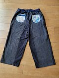着物リメイク 古布 手作り 縞に花のアップリケ パンツ