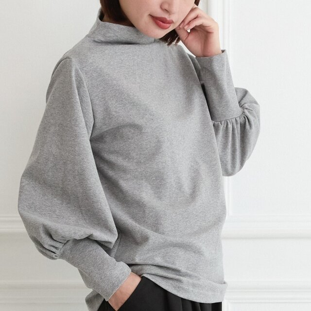 【✨再販3サイズ】ゆとりボトルネック バルーン袖 長袖 グレー 0261Grey