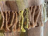 お色はベージュ系の糸を色々織り込みました。黄色みを帯びた色、レンガ色など肌になじむ織色です。