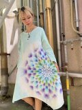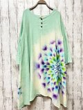 タイダイ染め 新型ヘンリーネック長袖ワンピース 優しい風のようなミントグリーンに幻想的な碧碧色の大曼荼羅 HD16-46