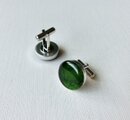 手描きの絵を樹脂で閉じ込めたカフスです。