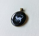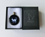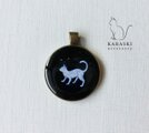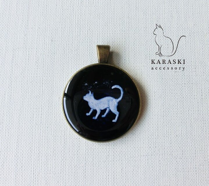 濃紺の背景にしろねこを描いたオリジナルイラスト(原画)をレジンでとじこめました。