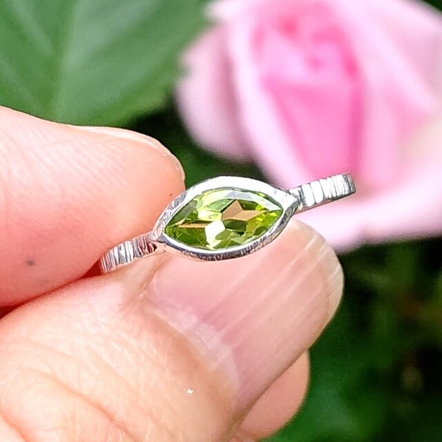 リングの腕は、平打ちリングにハンマーでテクスチャをつけて