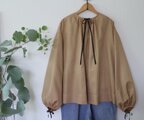 シルク混コットン薄手生地でギャザーブラウスを作りました。