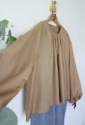 細かいピンタックがたくさん入ったデザインと、 ピンクとパープルが合わさったような色が大好きです。 パフスリーブもエレガントなんですが、 素材がリネンなので、 カジュアルに着こなせるところも気に入っています。 この度もありがとうございました。