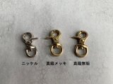 商品写真4枚目 左→ニッケル(シルバー色)中央→真鍮メッキ(商品写真ではこちらを使用)・右→真鍮無垢(オプションで+600円)