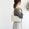 革ひもの両端を輪に結び2重のショルダーにすれば、コンパクトで上品なミニバッグにも。