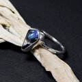 オーストラリア ライトニングリッジ産のセミブラックオパール原石を磨いて、アームに槌目を入れた華奢なリングに仕上げました。