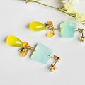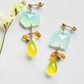 ファンシーカラー イエロー、ブルー カルセドニー と オレンジガーネットの ピアス 14kgf