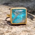 ルチルクォーツ×ターコイズ ダブレット スクエアカボション シルバーSV925リング