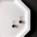 漆黒のひと粒とシルバーでシンプルなノンホールピアスに仕立てました。