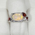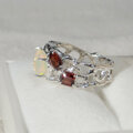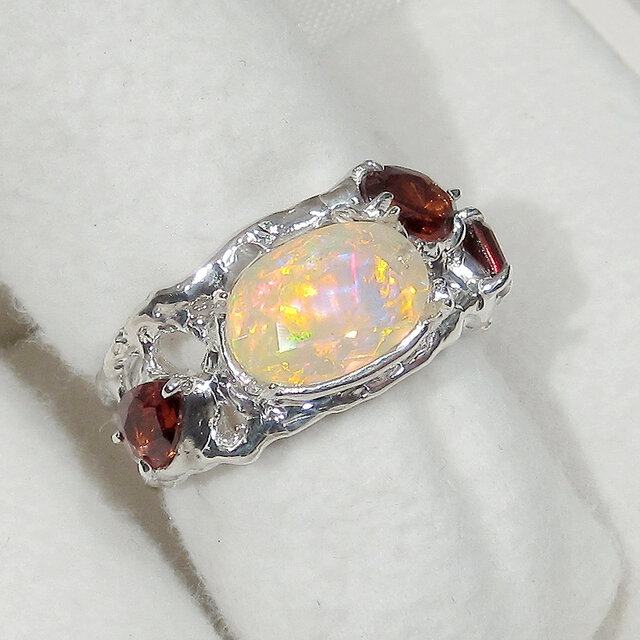 オパールとガーネット、SV925の指輪(リングサイズ:12号、サイズ変更可、ロジウムの厚メッキ、天然石、10月の誕生石)