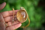 落ち着いた色ながら角度によっていろんな輝きになり、さりげない存在感。どんな服装にも合わせやすそうです。包装も素敵にまとめてくださり、ありがとうございます。また違う石たちにも挑戦してみたいです。