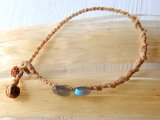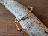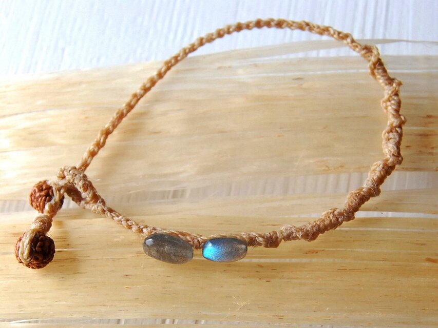 日本の麻の手紡ぎ糸と天然石ラブラドライトのブレスレットです。