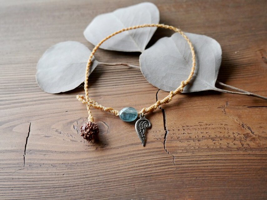 日本の麻の手紡ぎ糸と天然石カイヤナイトのブレスレットです。